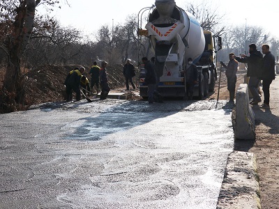 اجرای مرحله بتن ریزی تعریض جاده در مسیر چهارراه نسیم شمال به سمت آرامستان رضوی