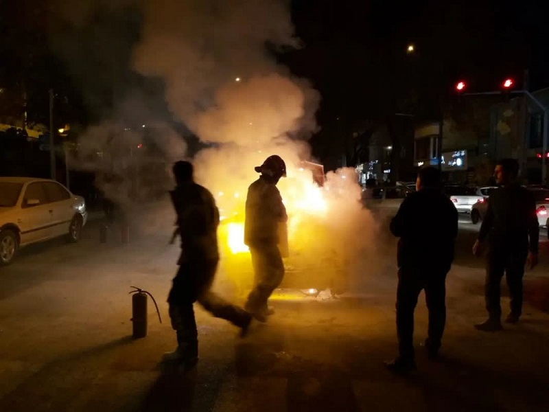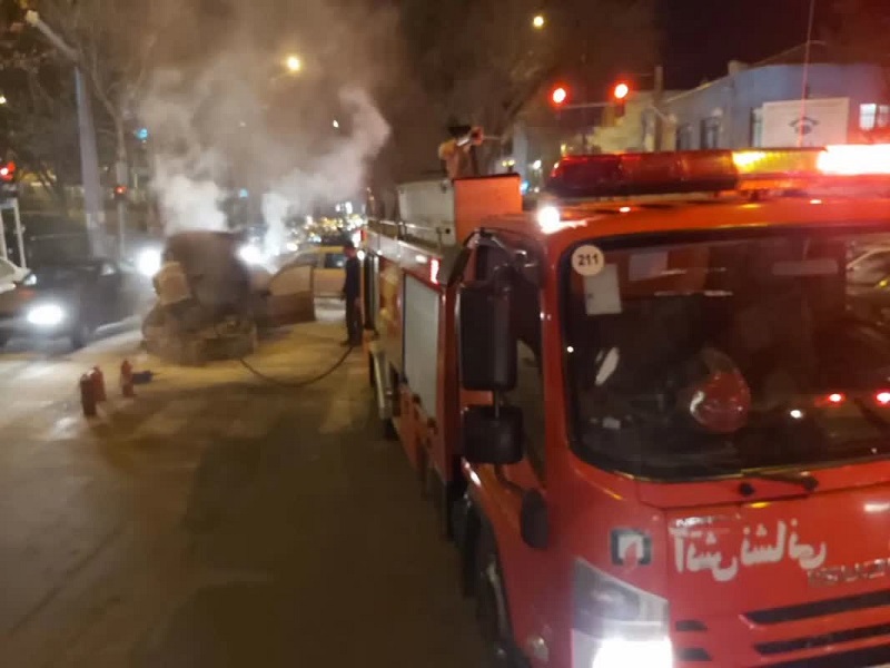 آتش سوزی خودرو پژو ۴۰۵ با وجود ترافیک سنگین توسط آتشنشانان قزوینی مهار شد