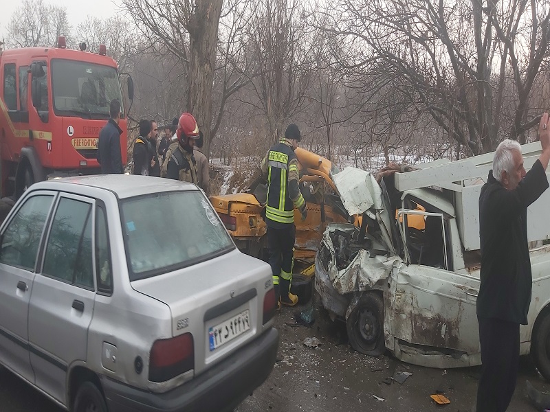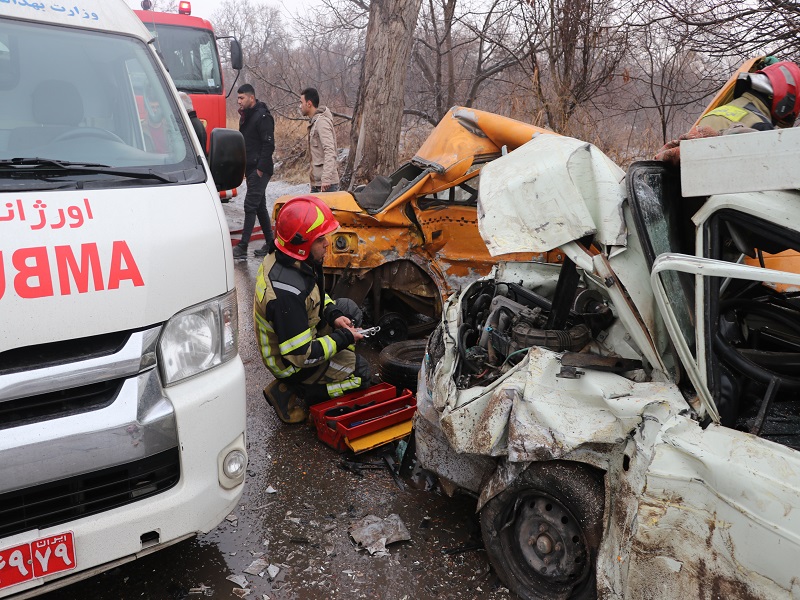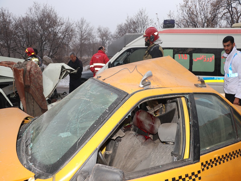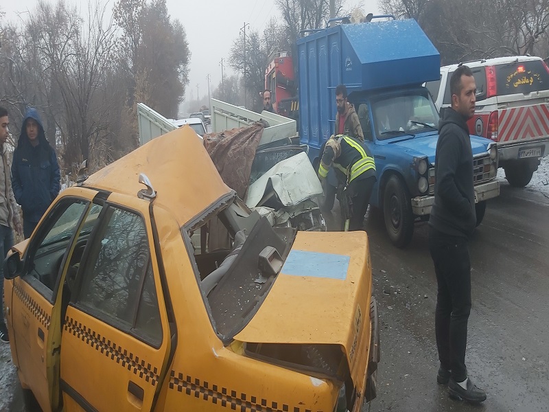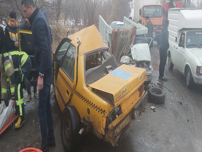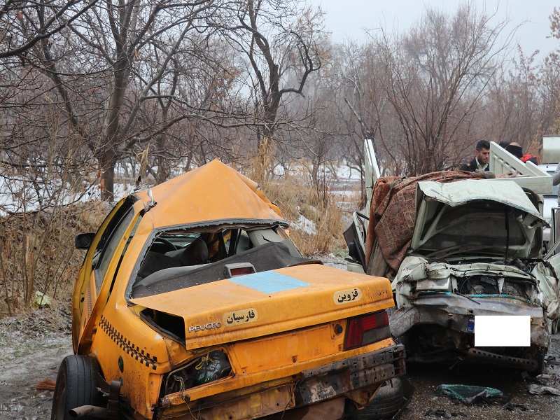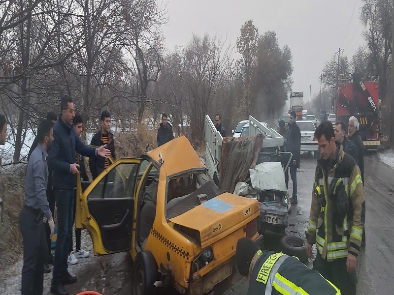 دو مصدوم بدنبال تصادف وانت با سواری تاکسی در جاده فارسیان قزوین