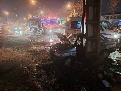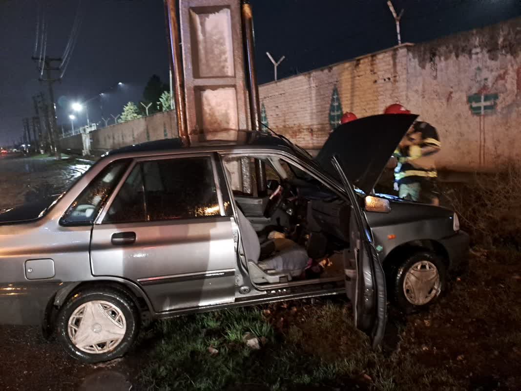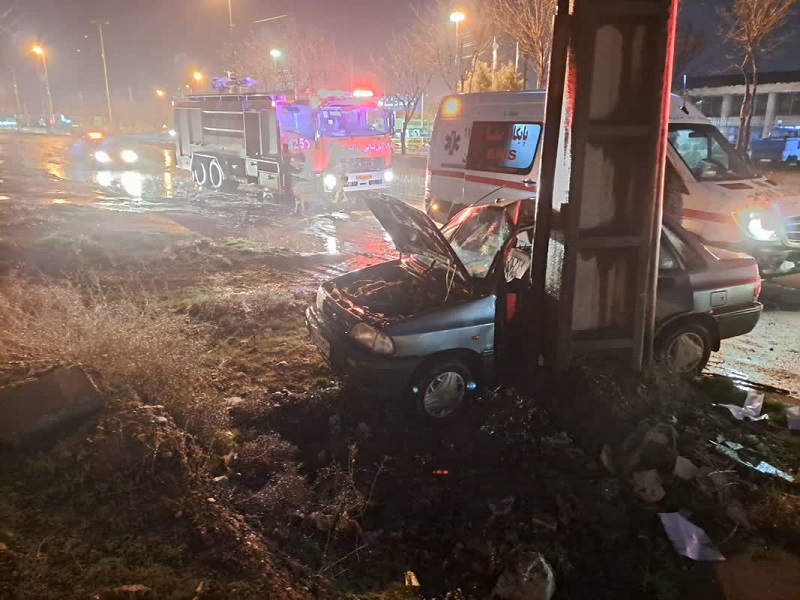 برخورد خودرو سواری پراید با تیر برق در جاده قدیم رشت به سمت قزوین