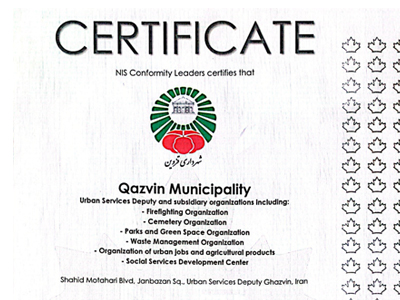 برای نخستین بار در شهرداری قزوین،گواهی سیستم مدیریت HSE توسط معاونت خدمات شهری و محیط زیست دریافت شد.