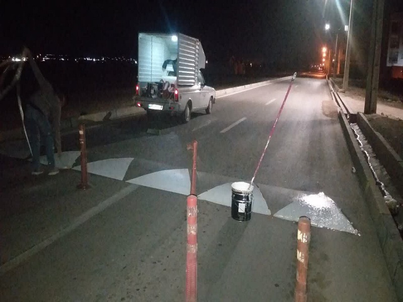 استمرار عملیات خطکشی عرضی معابر و سرعتکاه ها در سطح شهر