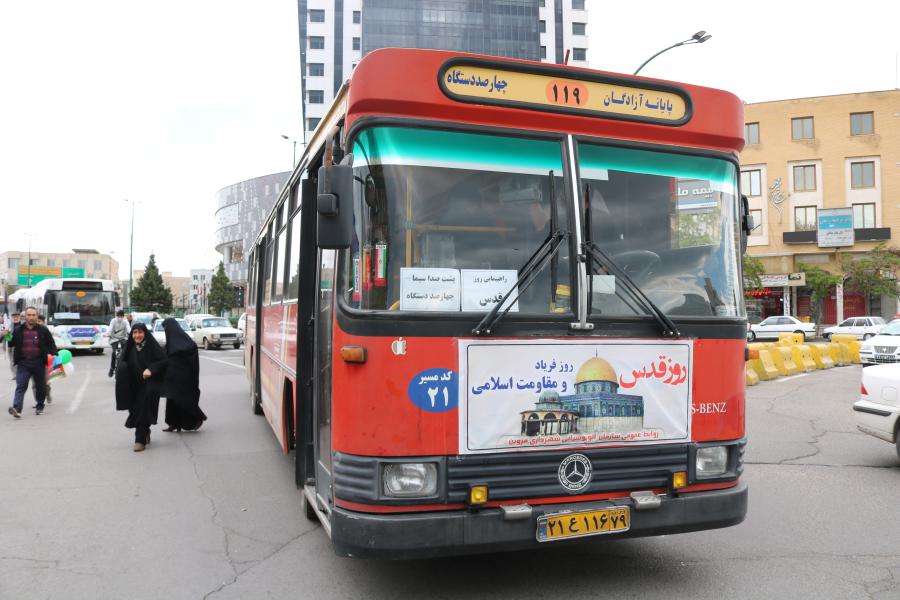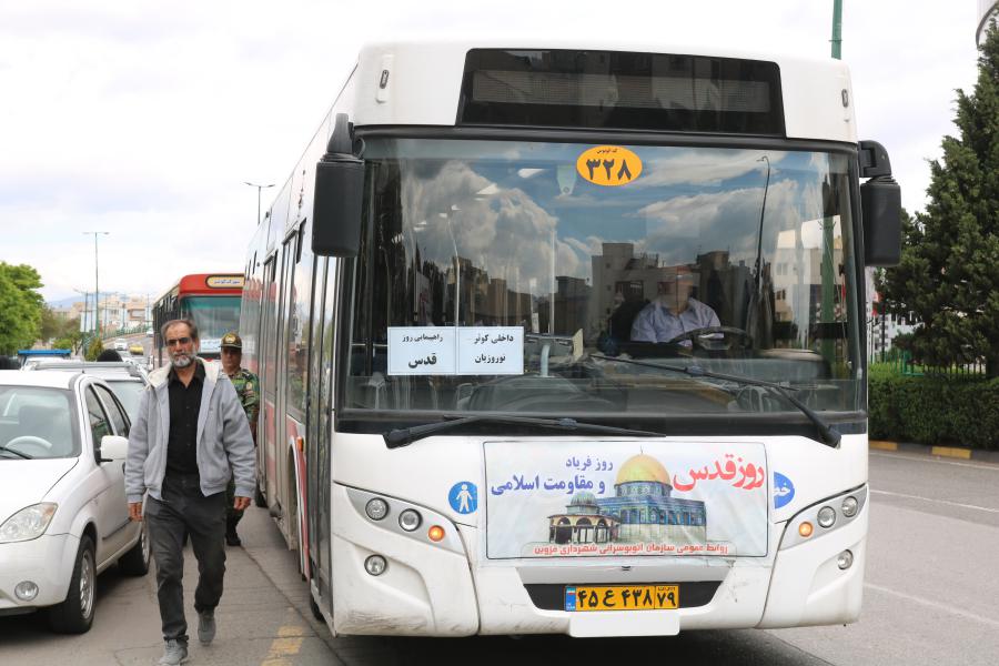 به مناسبت روز جهانی قدس ، ناوگان اتوبوسرانی شهرداری قزوین شهروندان را جهت شرکت در روز جهانی قدس رایگان جابجا کردند.