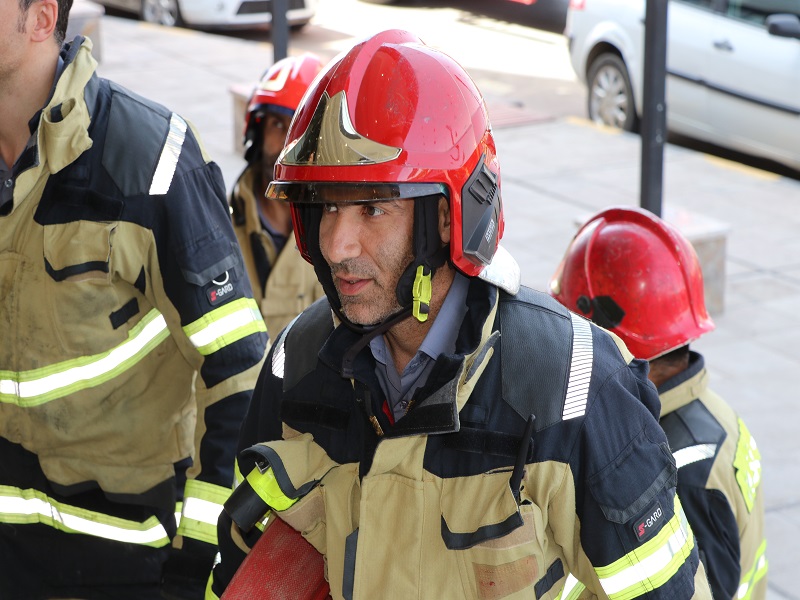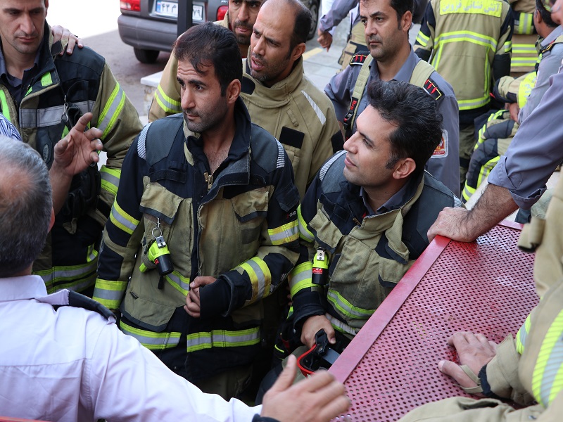 برگزاري مانور آتشنشانان در ساختمانهاي بلندمرتبه برج تجارت قزوين