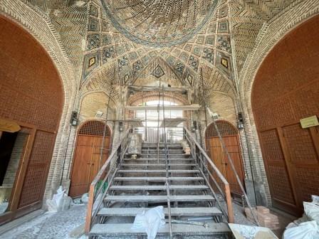پیشرفت فیزیکی ۵۰درصدی مرمت سر درب سرای سعدالسلطنه