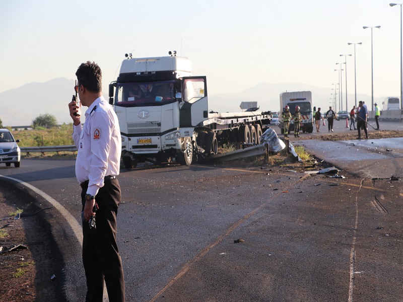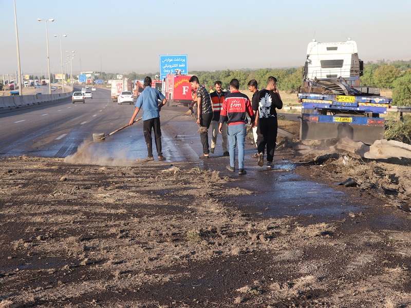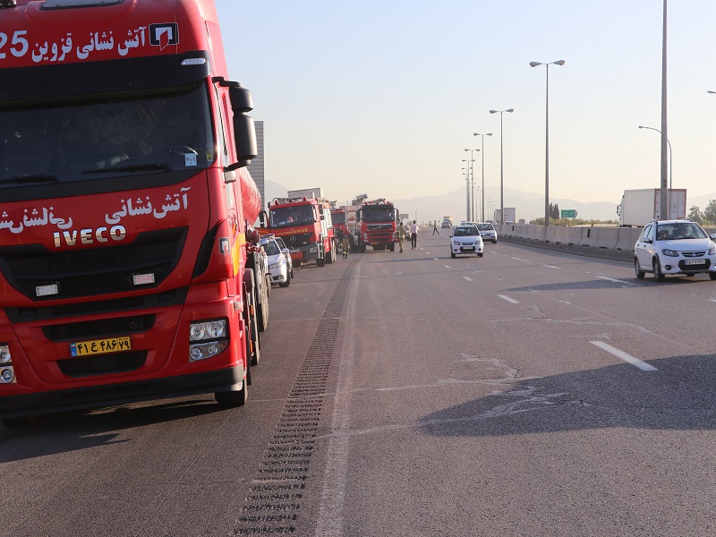 جلوگیری از حریق تانکر حامل مواد استایرن در حوالی اتوبان قزوین به زنجان