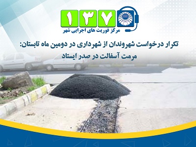 با بررسی واحد آمار مرکز 137 در مردادماه، همچنان در سه ماه متوالی مرمت آسفالت در صدر درخواستهای شهروندان قرار گرفت.