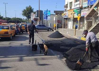لکه گیری و ترمیم روکش آسفالت ایستگاه های تاکسی شهر قزوین آغاز شد