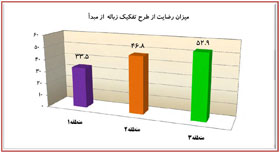 در نظرسنجي صورت گرفته در سال 1390 ميزان رضايت شهروندان از اجراي طرح تفكيك زباله از مبدا 88/4 درصد مي باشد و بيش ترين ميزان رضايت در محله بلوار سعادت از منطقه دو با 75درصد بوده است.