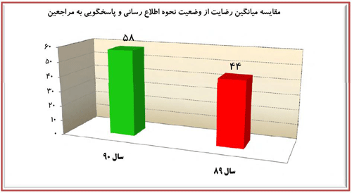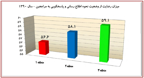 وي همچنين ادامه داد در نظرسنجي از شهروندان در خصوص نحوه اطلاع رساني و پاسخگويي کارکنان شهرداري قزوين در سال 1390 نسبت به سال 1389 شاهد افزايش 14 درصدي بوديم که اين امر بيانگر مسير درست حرکت اين مجموعه در راستاي اعتلاي فرهنگ تکريم ارباب رجوع است. در ميان محلههاي شهر ، ساکنين بلوار پرستار از منطقه دو با اعلام 76 درصد ، بيشترين ميزان رضايت را در اين خصوص ابراز داشته اند.