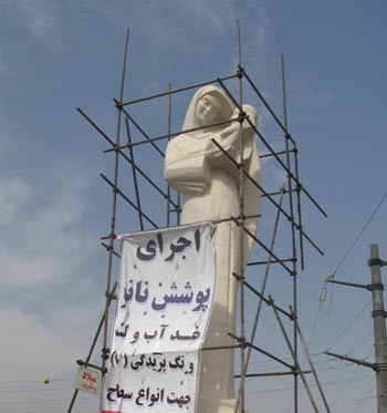 اجراي پوشش نانو بر روي مجسمه مادر واقع در ميدان مادر شهر قزوين