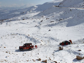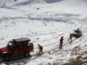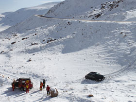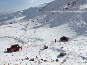 امدادرساني در حادثه خودروي پرايد در گردنه برفي كامان قزوين