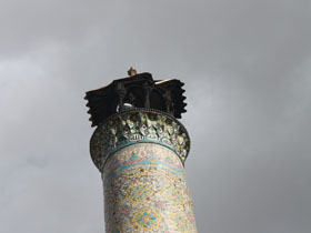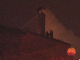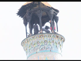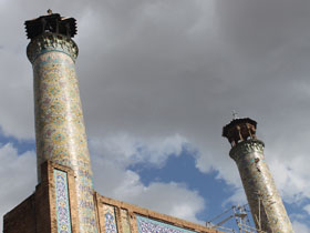شعله هاي حريق در مناره مسجد تاريخي جامع قزوين