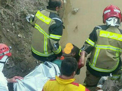 نجات فرد گرفتار شده در داخل کانال فاضلاب شهری