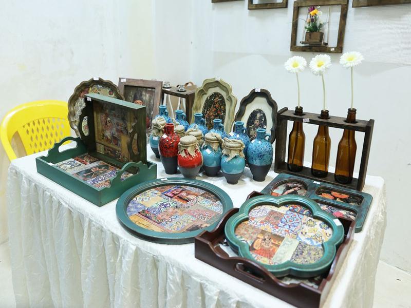 در این نمایشگاه محصولات هنری و صنایع دستی از قبیل رودوزیهای سنتی، چرم دوزی، قلم زنی روی چرم و مس، شیرینی سنتی و مدرن، عروسک دوزی، تریکو بافی، گلیم و قالی بافی، زیورآلات، سفال، عرقیجات گیاهی و گل و گیاه در معرض دید عموم گذاشته شده است.