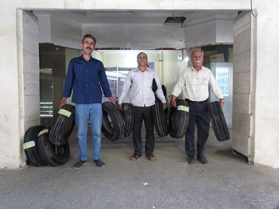 30 حلقه لاستیک حمایتی پانزده نفر از برندگان همایش های اول و دوم تاکسیران شهر من تحویل شد